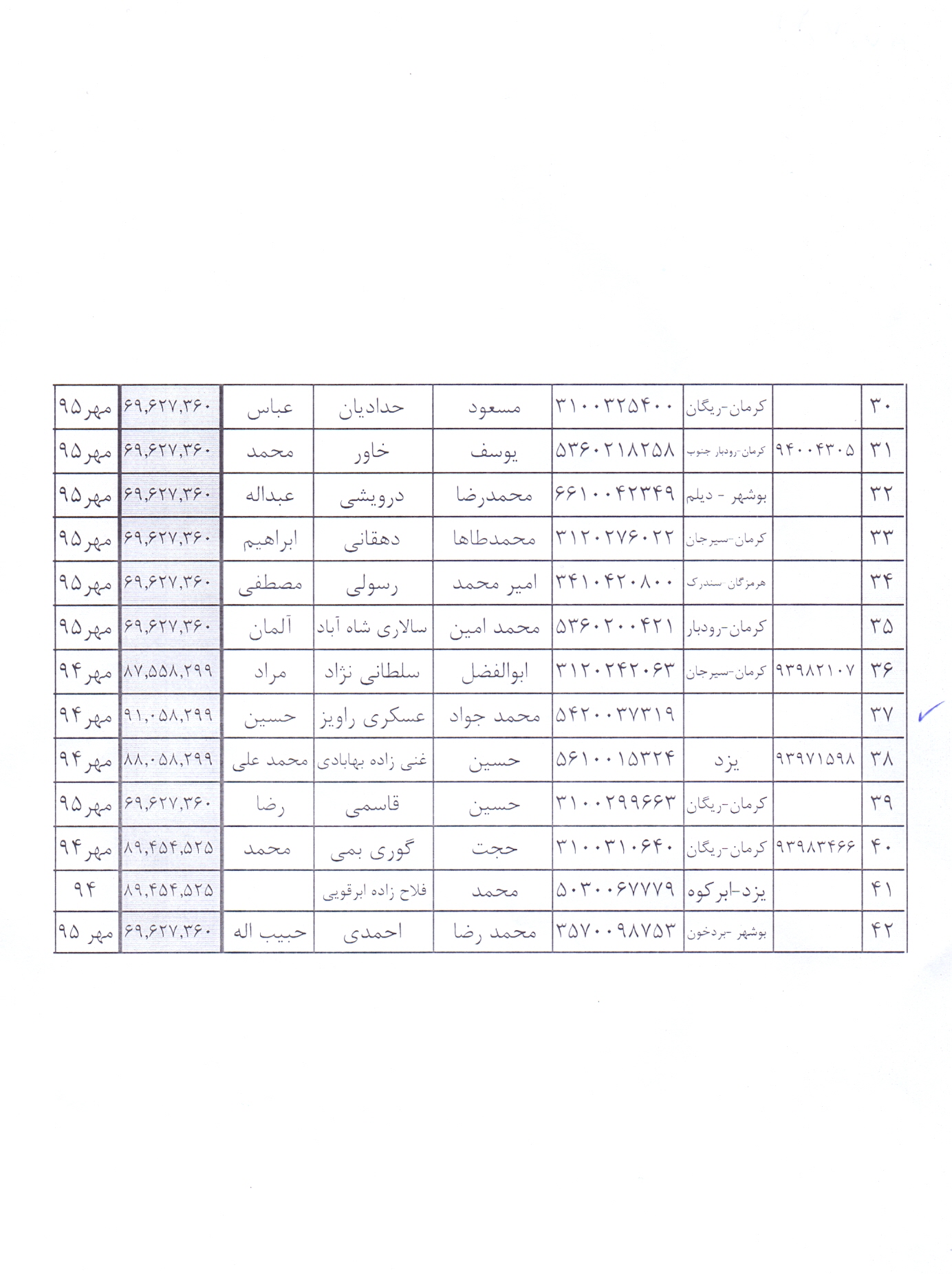 دانشجویانی که اسامی آنها در جدول ذیل می باشد، حداکثر تا 97/07/21 جهت مشخص نمودن وضعیت بدهی خود به امور مالی پردیس مراجعه نمایند. در غیر این صورت با ضامن آنها تماس گرفته می شود.