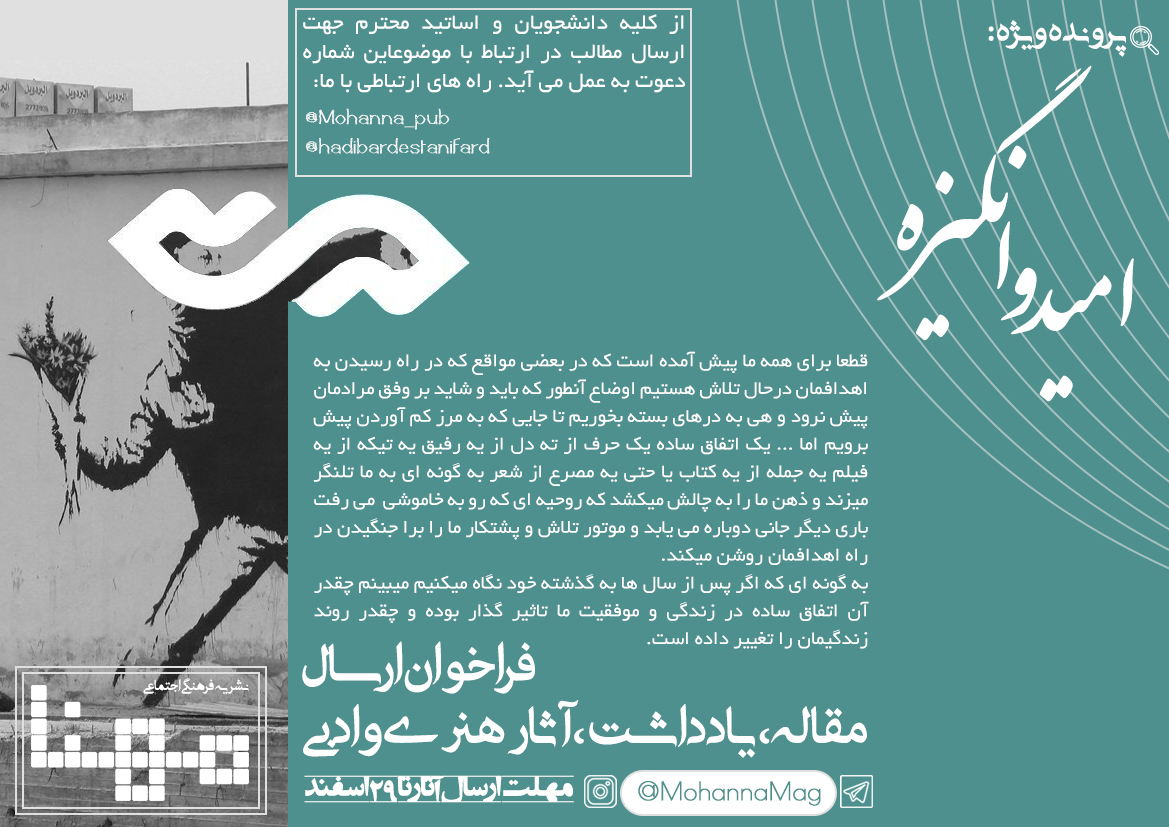 فراخوان ارسال مقاله، یاداشت، آثار هنری و ادبی مرتبط با حوزه های انگیزشی تلنگر های اجتماعی و امید