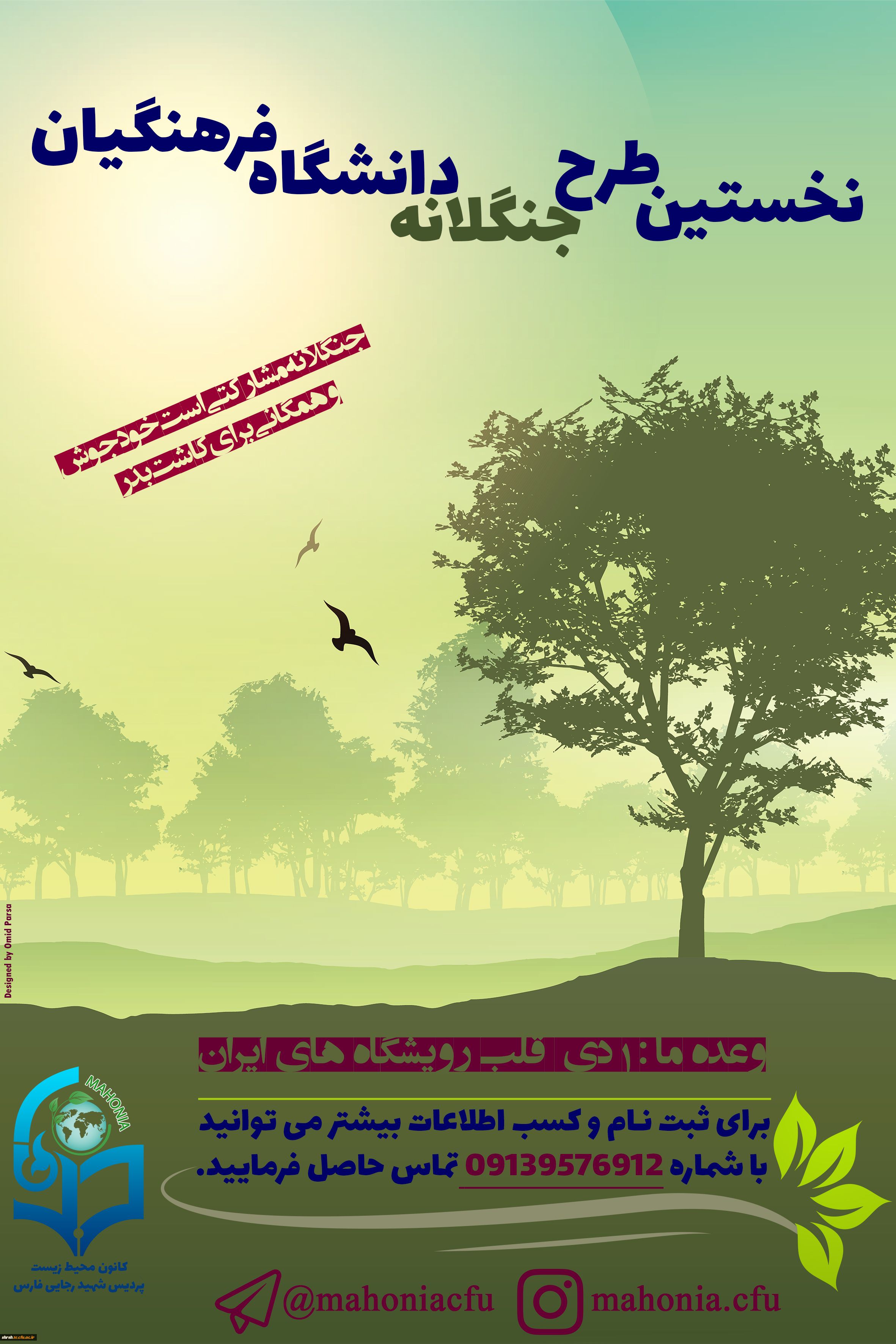 پس مایه امید است که حرکتی مردمی و سراسری با نام زیبای جنگلانه امسال برای اولین بار در دانشگاه فرهنگیان توسط کانون محیط زیست پردیس شهید رجایی(ماهونیا) برگزار گردد تا به احیای رویشگاه های جنگلی کمک کند.
