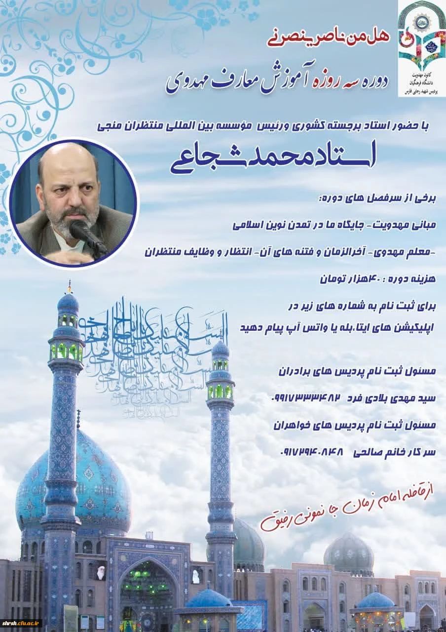 دوره سه روزه آموزش معارف مهدوی با حضور استاد برجسته کشوری و رییس مؤسسه بین المللی منتظران منجی